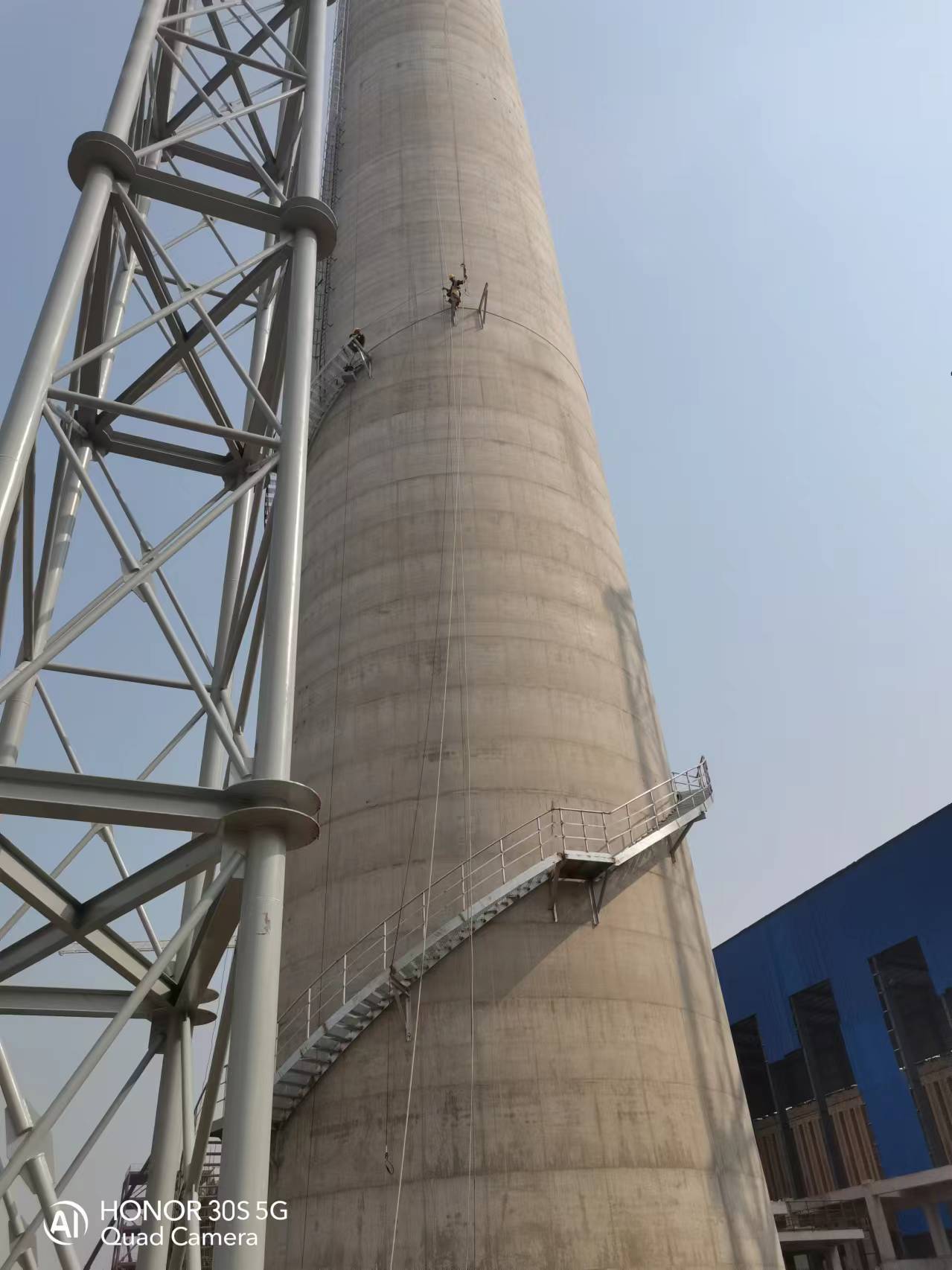 凌鋼110米煙囪4人涂刷航標(biāo),2人涂刷平臺油漆